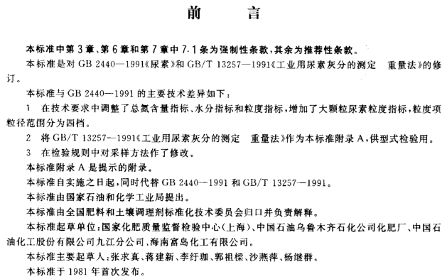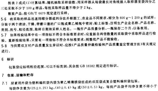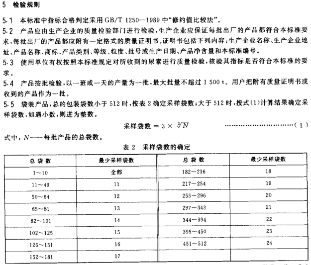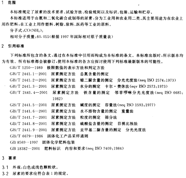 尿素產品標準