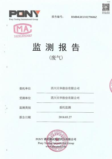 四川天華股份有限公司動力車間1#脫硫塔2018年1季度廢氣委托監測報告