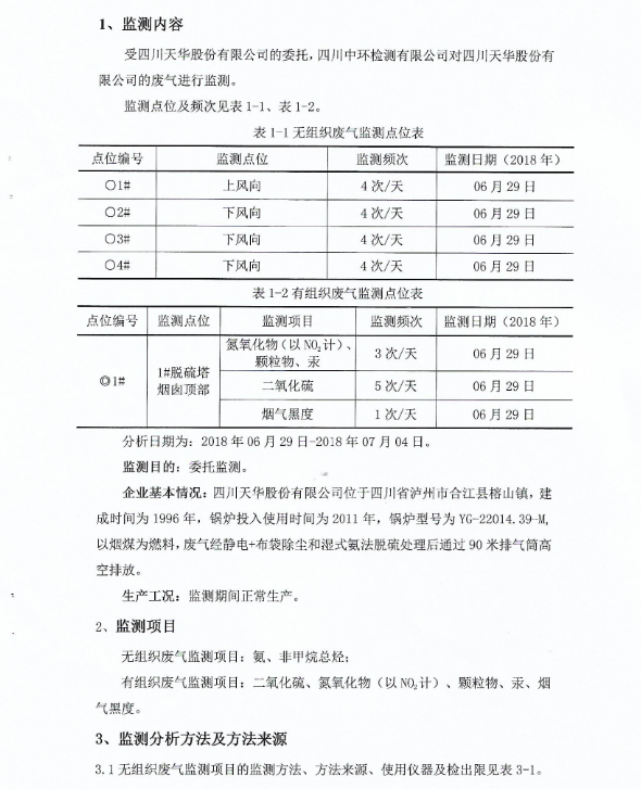 四川天華股份有限公司動力車間1#脫硫塔2018年1季度廢氣委托監(jiān)測報告