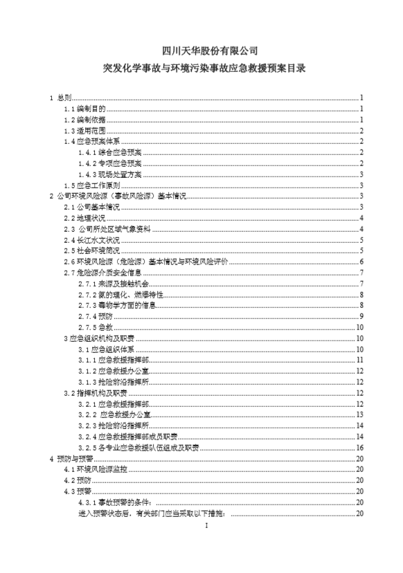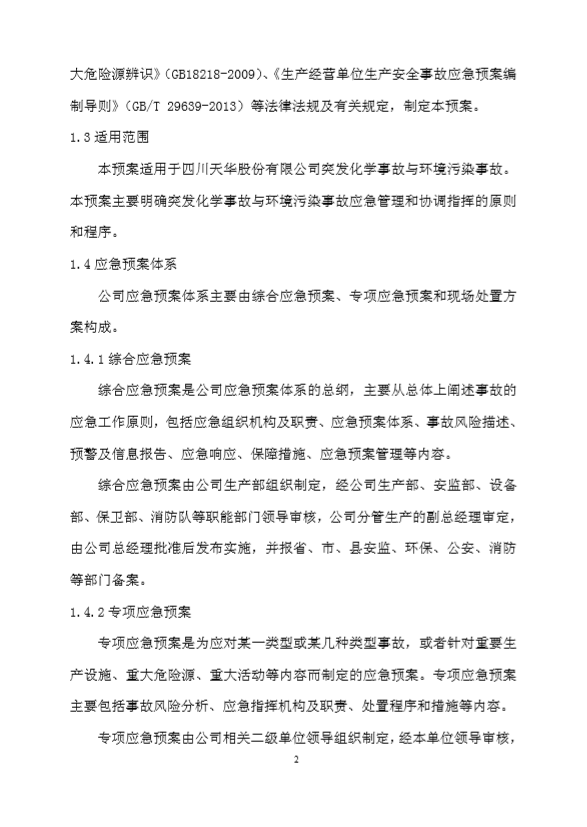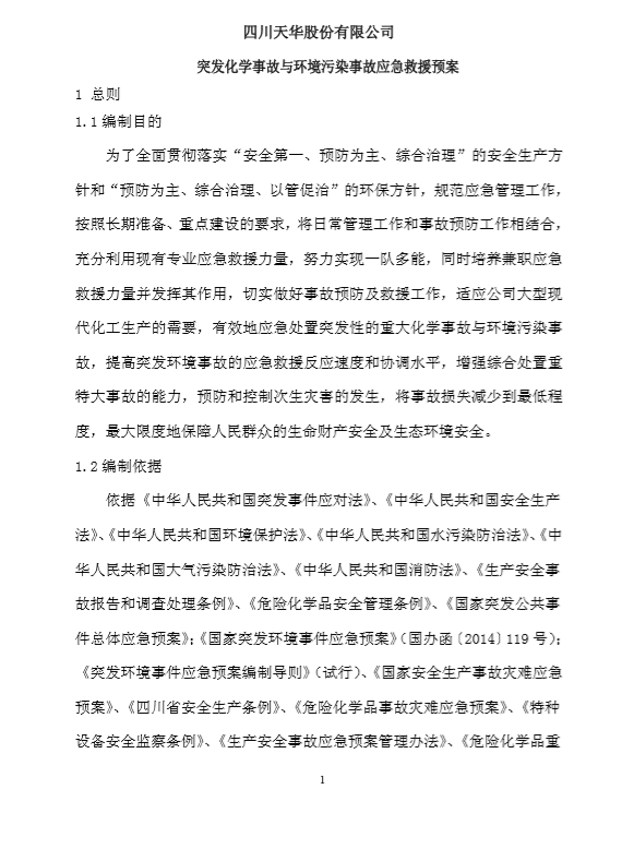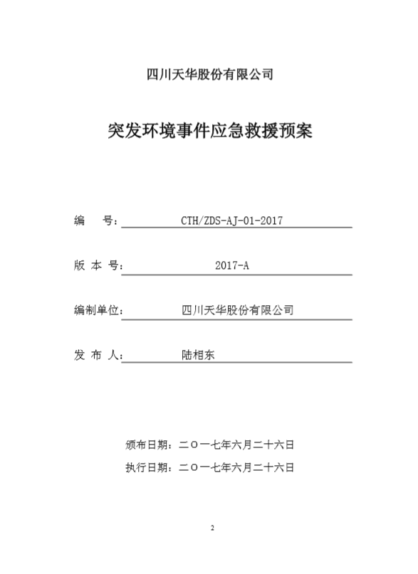 四川天華股份有限公司突發環境事件應急預案