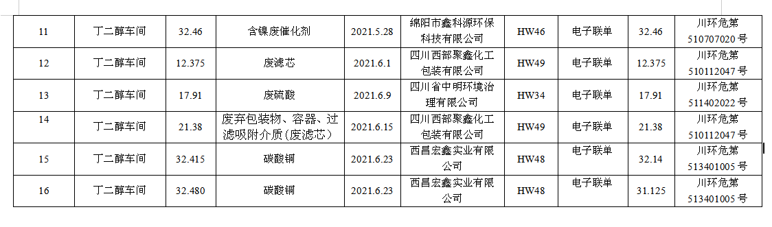 四川天華富邦化工有限責(zé)任公司危廢轉(zhuǎn)移情況公示