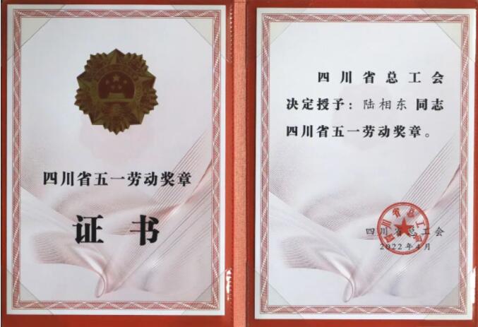 公司黨委書記陸相東獲評四川省五一勞動獎章